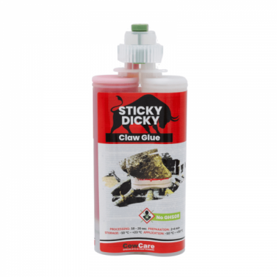You need a claw glue you can rely on, and NEW NO HEAT GLUE!! Sticky Dicky – Red Adhesive 200ml for Farmers is an excellent choice. This is a fast-setting glue that takes only 10-20 seconds to set and is highly recommended by farmers, hoof trimmers and veterinarians. It contains no carcinogens, so it’s safer for you and for your cattle and does not require a PU certificate to be used in the EU. This is a high quality, two-component glue offering superior strength and can be used with wooden, rubber and polyurethane (PU) blocks.